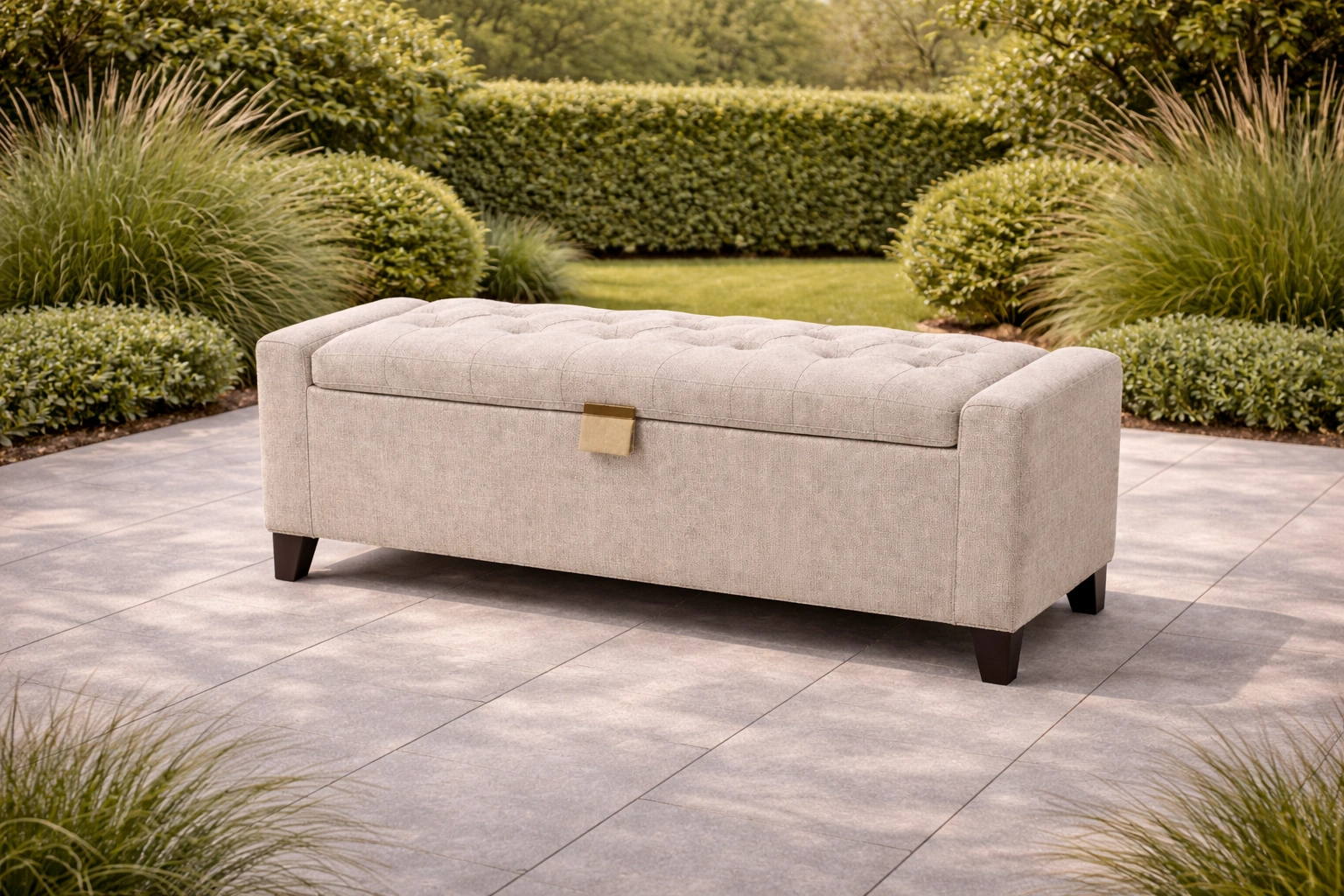 Conception avec structure tressée et support métallique, adaptée à divers environnements extérieurs.