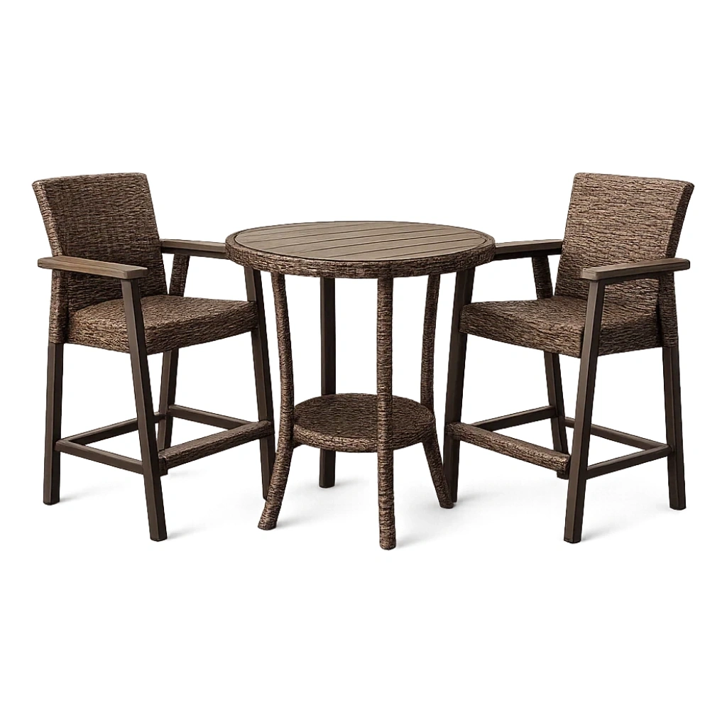 Ensemble de bistro comprenant une table ronde et deux chaises.