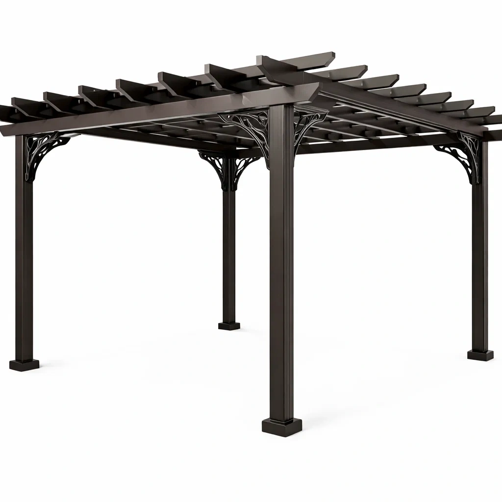 La pergola est fabriquée en aluminium robuste, offrant une durabilité accrue dans les environnements extérieurs. Les dimensions sont de 300 cm de longueur, 300 cm de largeur et 240 cm de hauteur. La structure est conçue pour résister à des conditions météorologiques variées, avec une bonne résistance à l'eau.